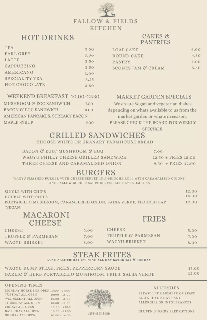 Debbie and Tom from Fallow and fields are opening up there very own kitchen up at the farm, showcasing local ingredients and Wagyu beef, with monthly supper clubs and sunset steak frites evenings they will be cooking up a storm under the straw barn at Lopemede 6 days a week. All year round.